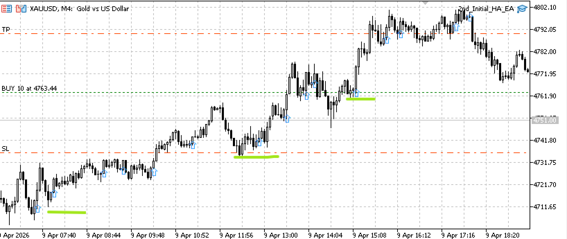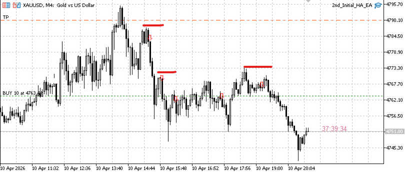 2. Entry Execution – Depending on the selected mode, the EA either enters immediately (Standard) or places a pending order at the last swing high/low (Second Mode).