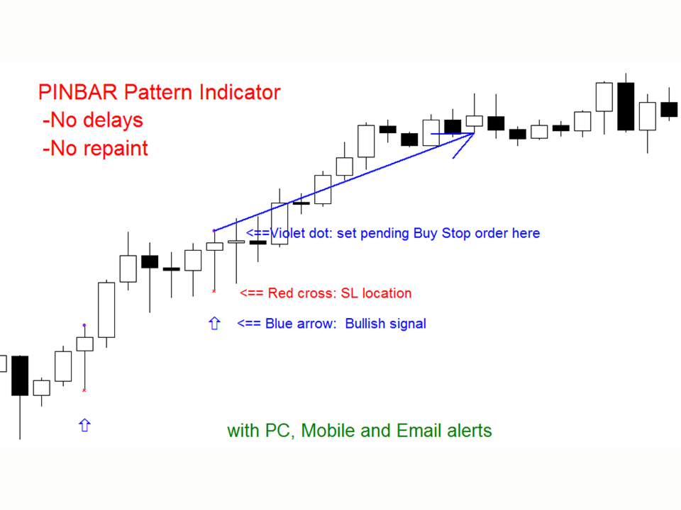Indicatore Crypto_Forex Pattern PINBAR per MT4, senza ridisegnare, senza ritardi.