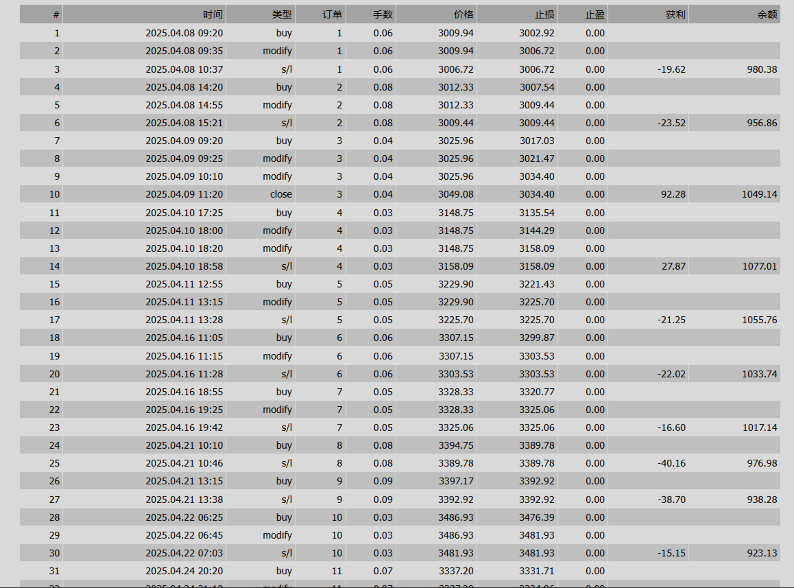 一次一单,每单有止损,跟踪止损和跟踪止盈。