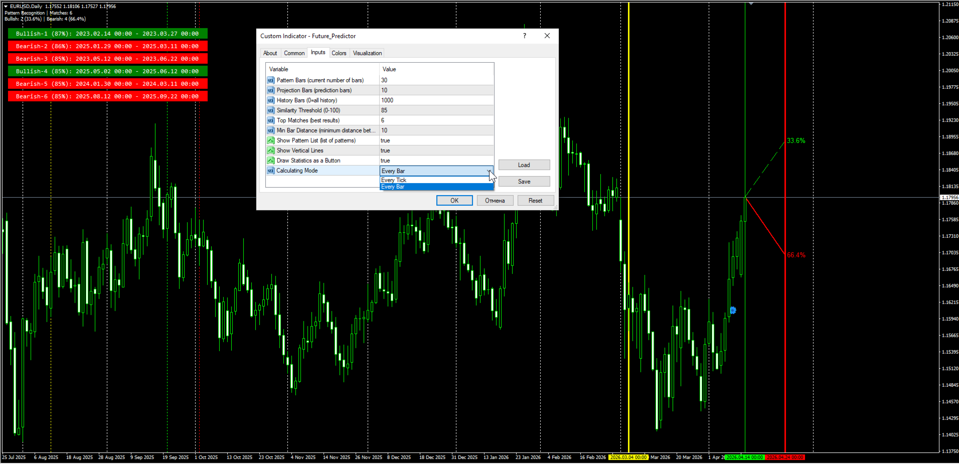 - Calculation Mode: Every tick or every bar (performance optimization)