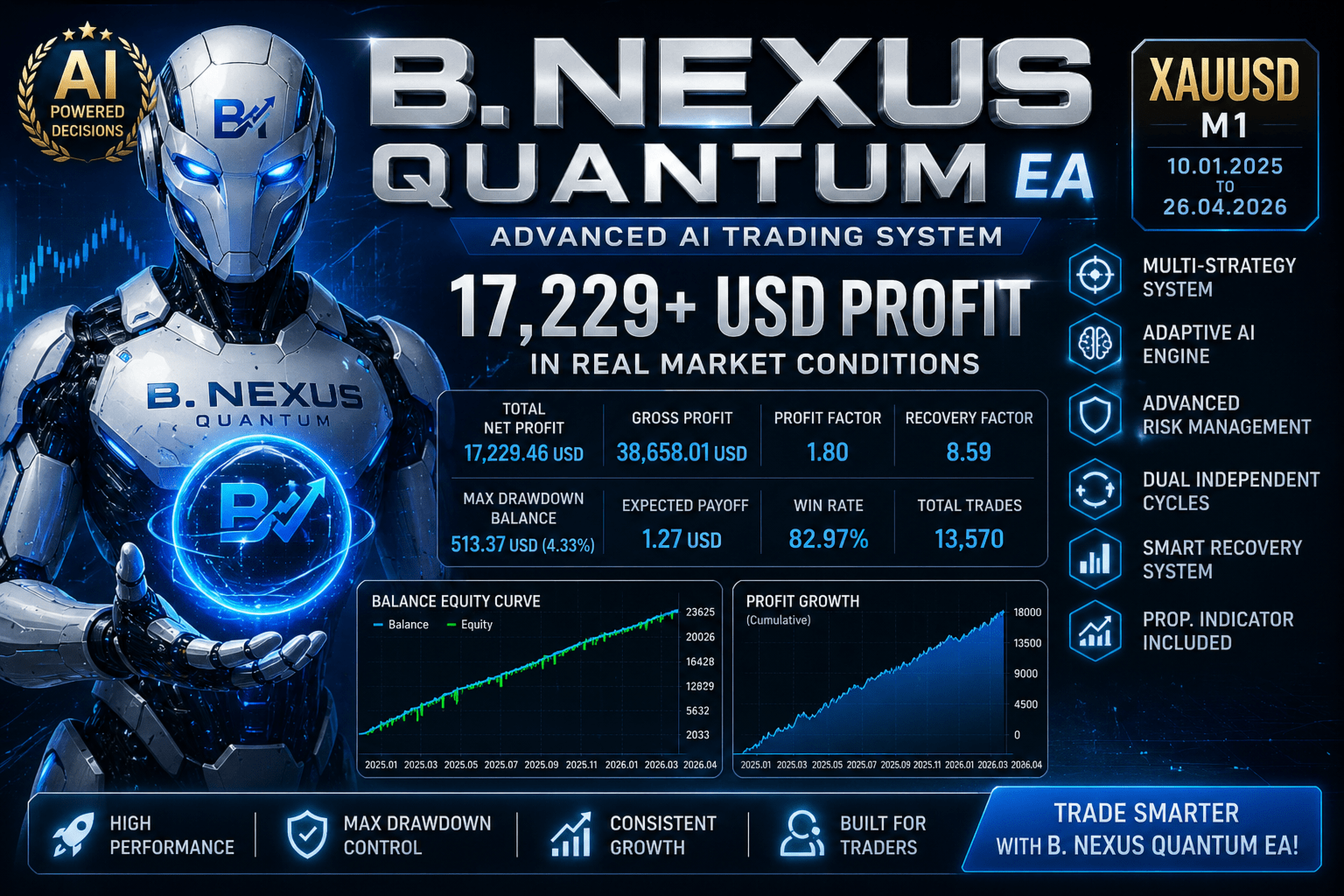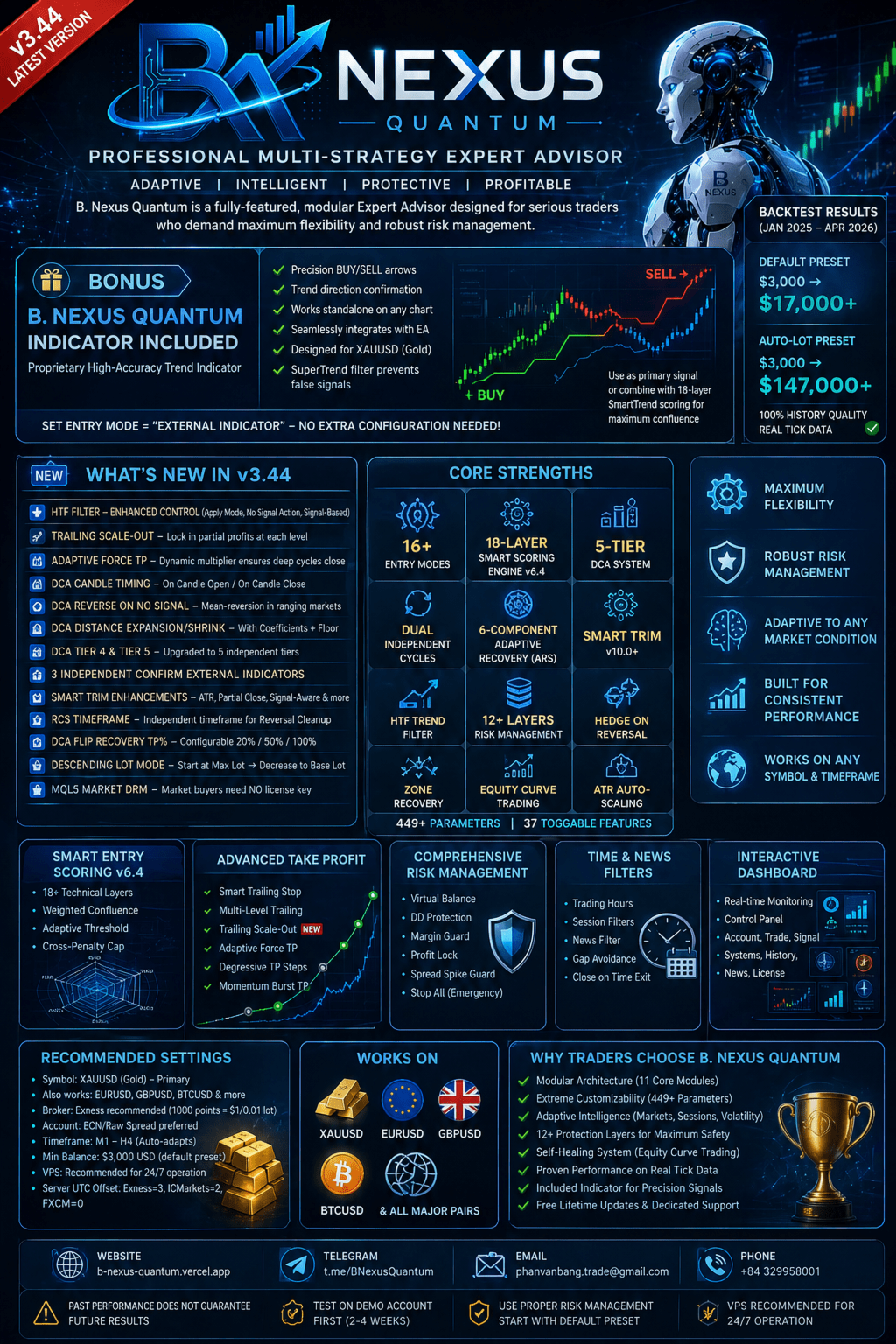 I am B. Nexus Quantum - a professional-grade, modular Expert Advisor engineered for serious traders who refuse to compromise on flexibility, intelligence, and risk control.