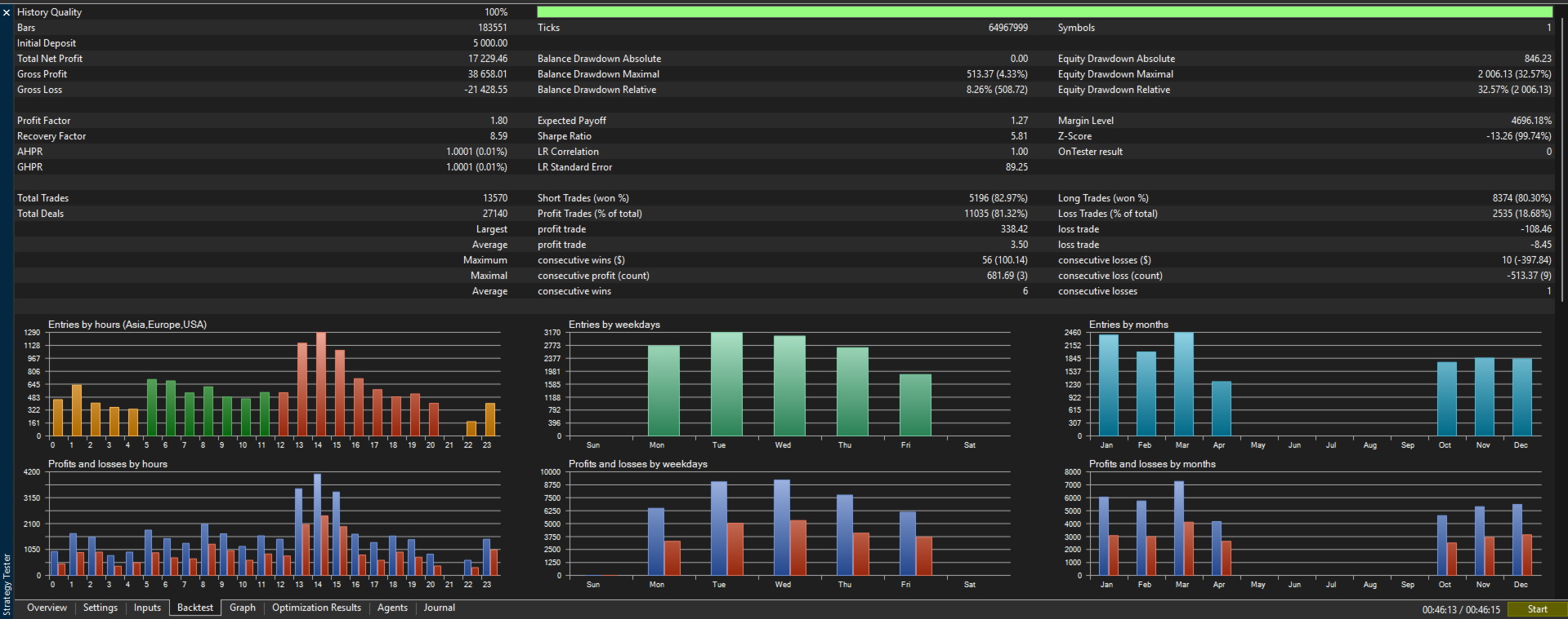 • Backtest mode: "Every Tick Based on Real Ticks" for accurate results