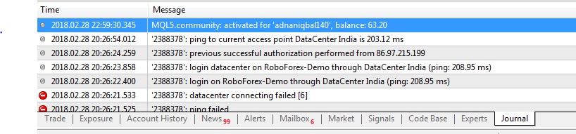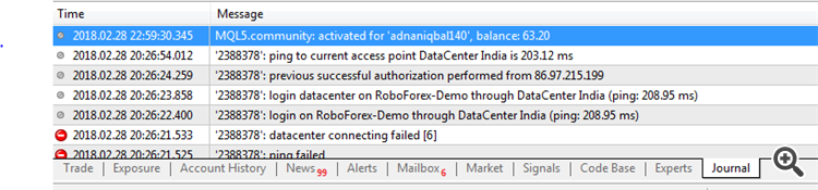 2) You can see successful login in MT4 Logs