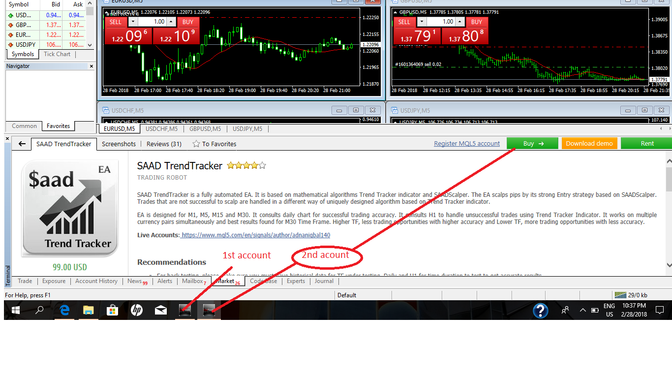 pls see attach photo, I manage to open 2 mt4 same server same broker same pc, tryin to download the ea for my 2nd account but its not downloadable.