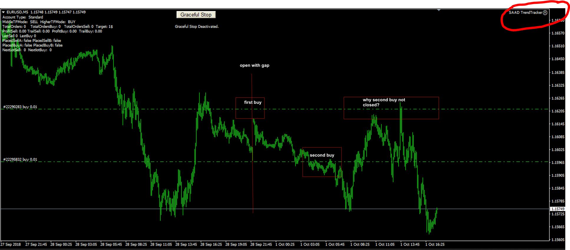 Hi Adnan, I am a rental customer of the Trend Tracker. I want to bring to your attention the two operations of today on EURUSD 5M TF. Being the minimum take profit of 1 euro, the first operation was not closed, the second operation could perhaps be closed.