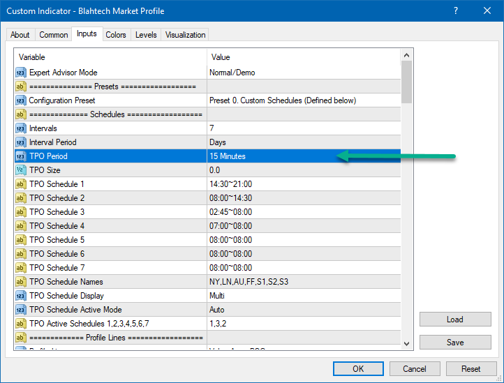 The TPO Period defaults to 30 Minutes which will snap the start time to the nearest 30 minute candle.