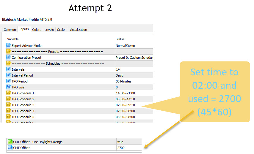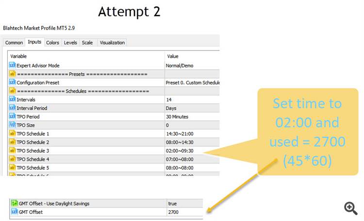 2. Setting time period to 02:00 and using the offset of 2700 (45 * 60)