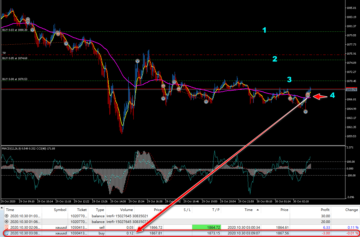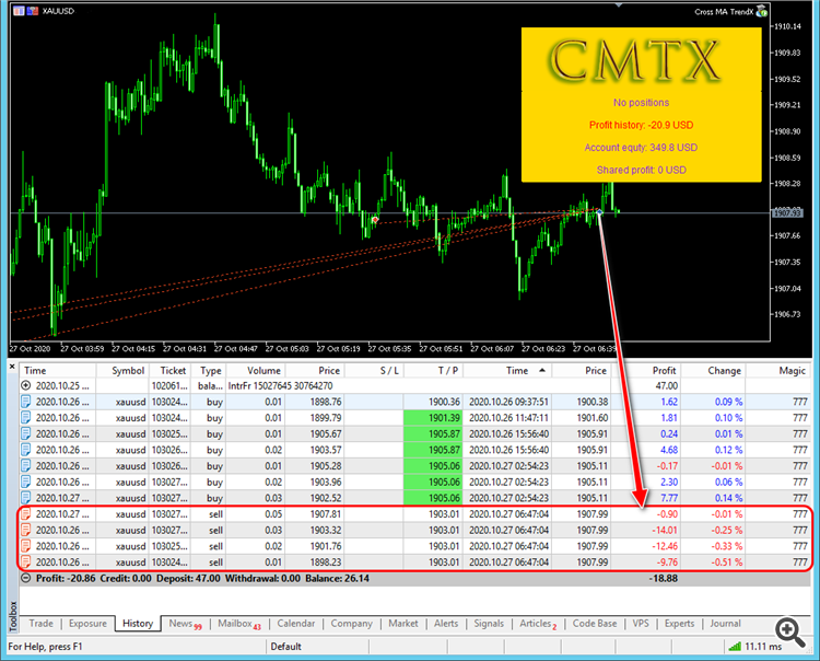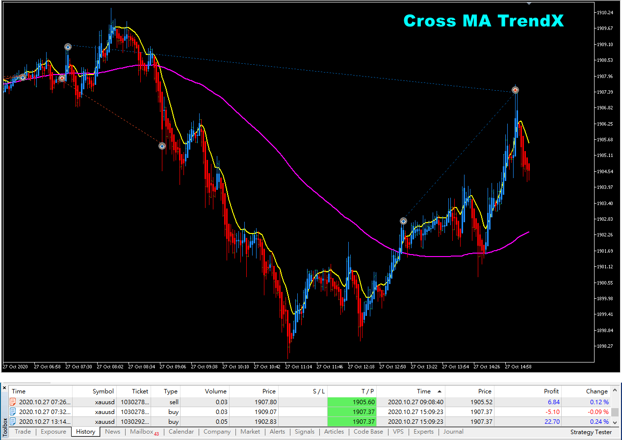 IM 0 05:47:04.554 Cross MA TrendX (XAUUSD,M1) Close one order to collect profit