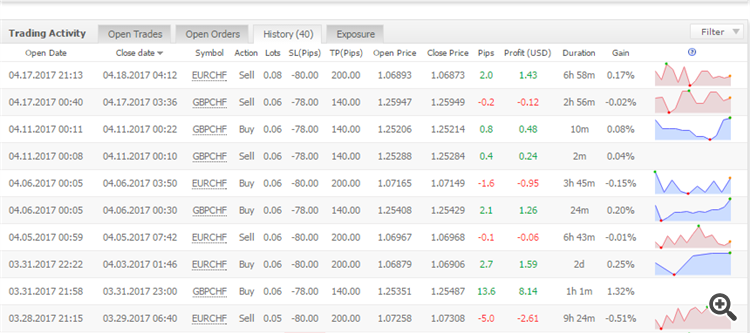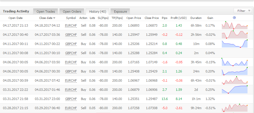 Qui ci Sono Gli ultimi Risultati di Lavorare su Uno dei miei conti reali: