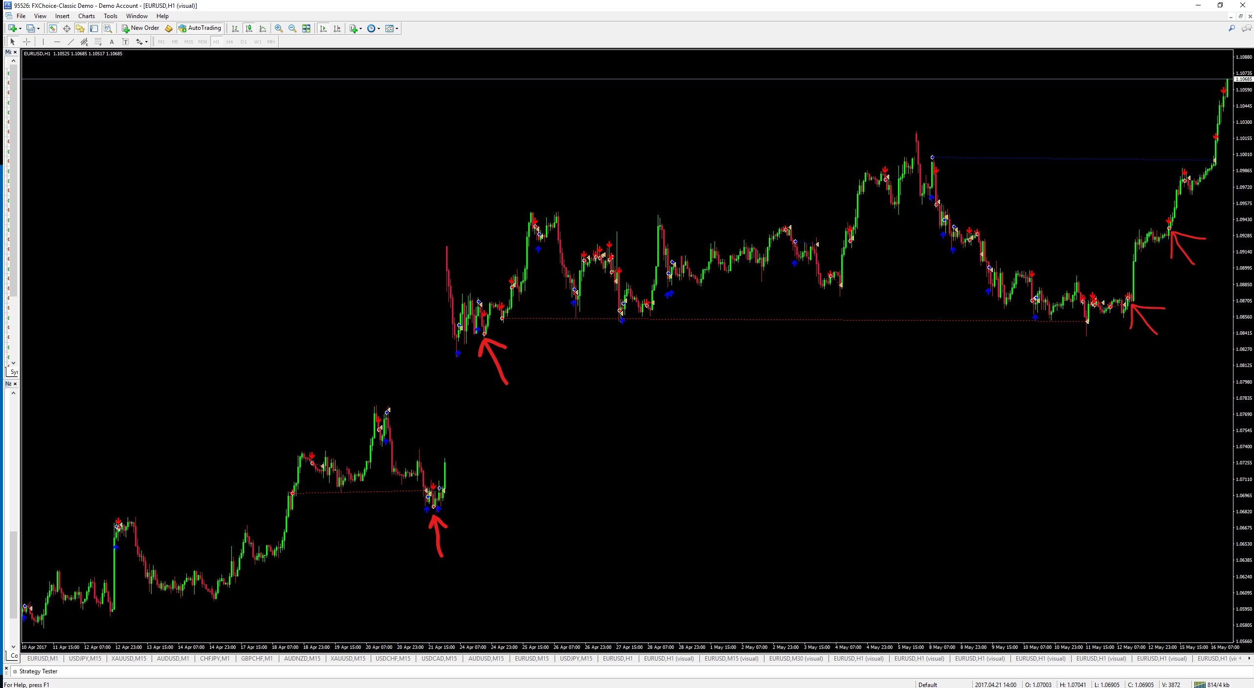 I thoroughly tested your EA and am very impressed with the performance, except that it rapidly blew my account and I'm not sure why. I attached a photo of my settings. I ran the test in the MT4 tester from 1/1/2017 to 9/1/2017. Started account with $3,000. From January to May 11th the account got up to $10,000, then on May 16th it blow my account with four trades. I had trailing stop set, so I'm not sure why those four trades did not get stopped out. Instead, they held the short position until my account blew up. Please see the attached photo of the chart. I have big red arrows pointed to the four short positions that blew me up. I will buy your EA if I can figure out how to adjust setting so I don't lose all my money. I traded EUR/USD on 1 Hour chart. I also attached an image of the Balance/Equity graph, and the journal. Thanks in advance for getting back to me. Also, do you have same EA for MT5?