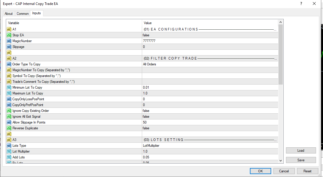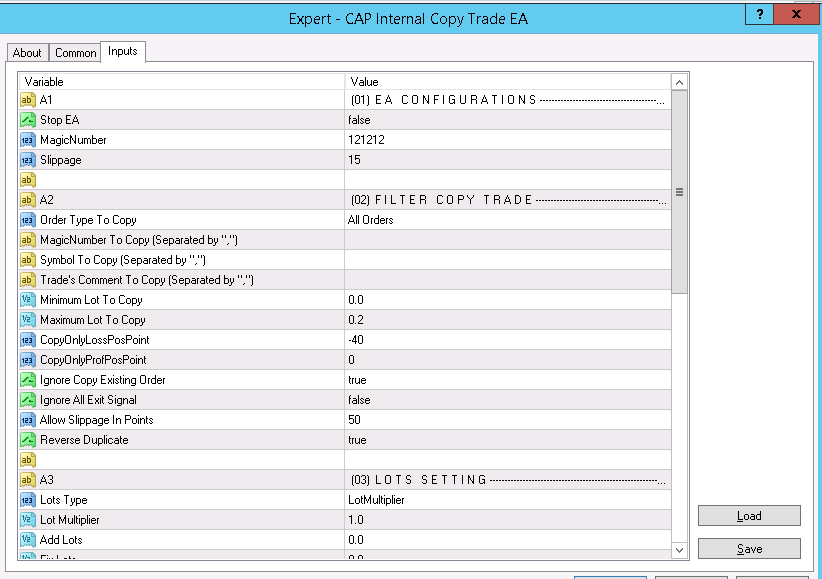 CAP Internal Copy Trade EA