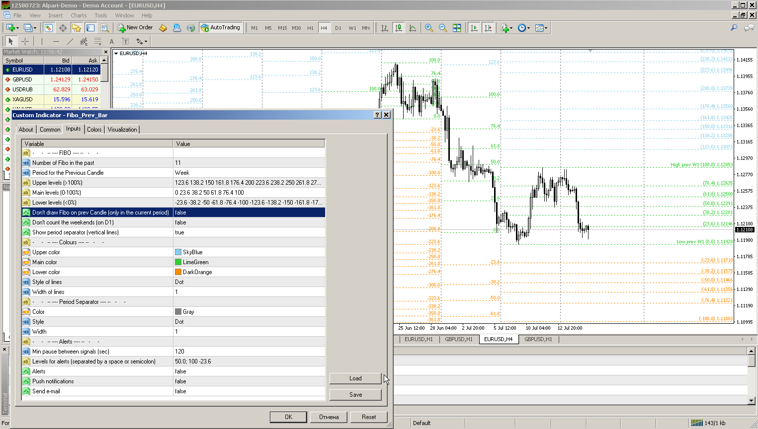 Новая версия индикатора (Fibo Candle Previous 2.00)