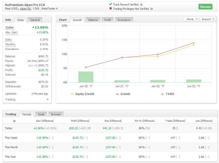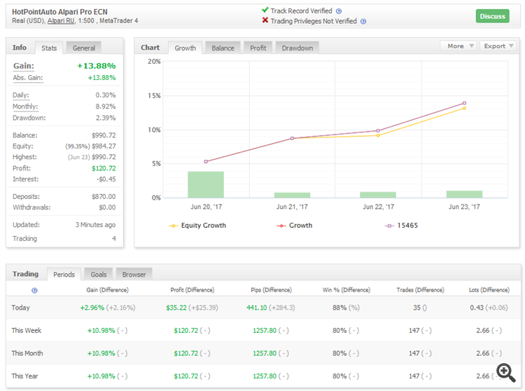 I have GreenPoint Auto on real account. It works from this week and help to HPA to recover loss. Big risks on this account. And this is real ECN PRO account. You can find it in my signals. In myfxbook I selected trades of GPA by magic numer 15465.