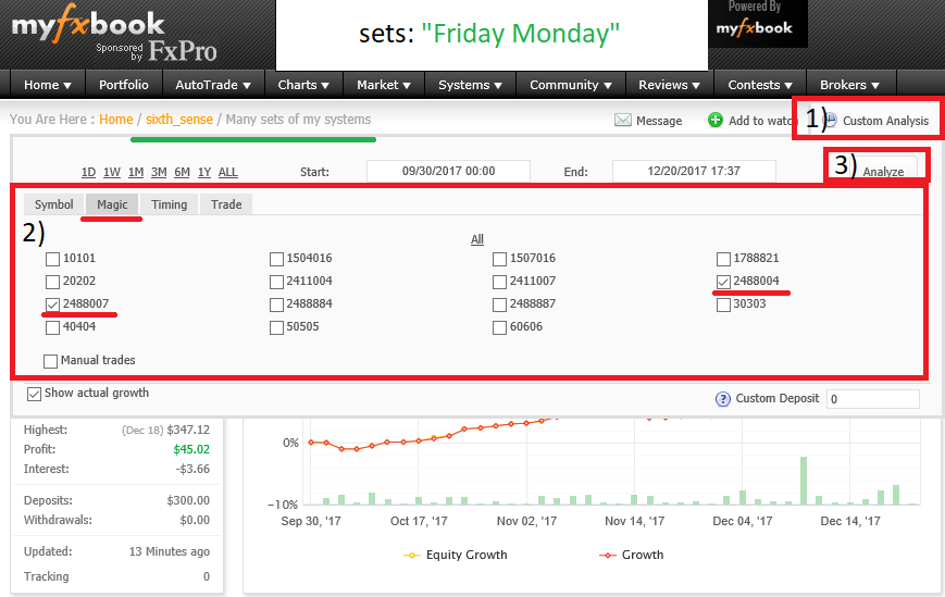 You can track the performance of each set on the site of the myfxbook (myfxbook.com/members/sixth_sense).