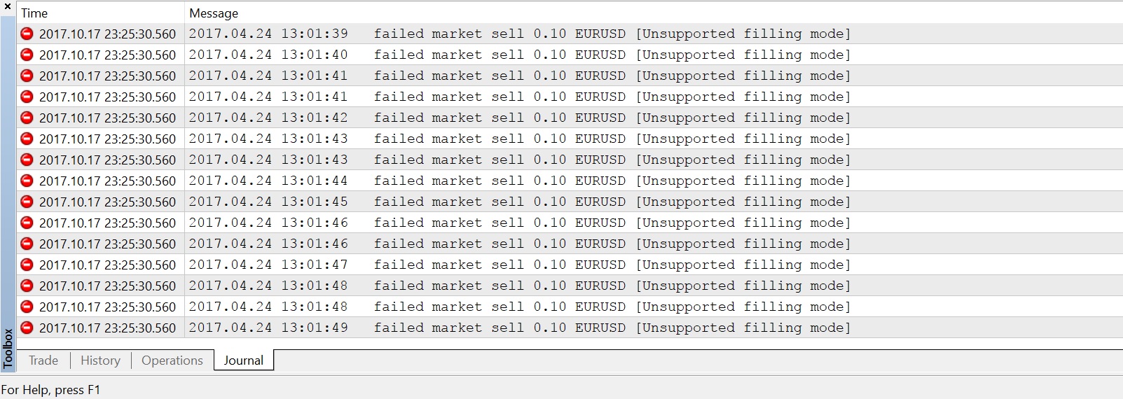For EURUSD - H1, it says Unsupported Filling Mode error while backtesting. I used code 34 and lot size = 0.01. Please help.