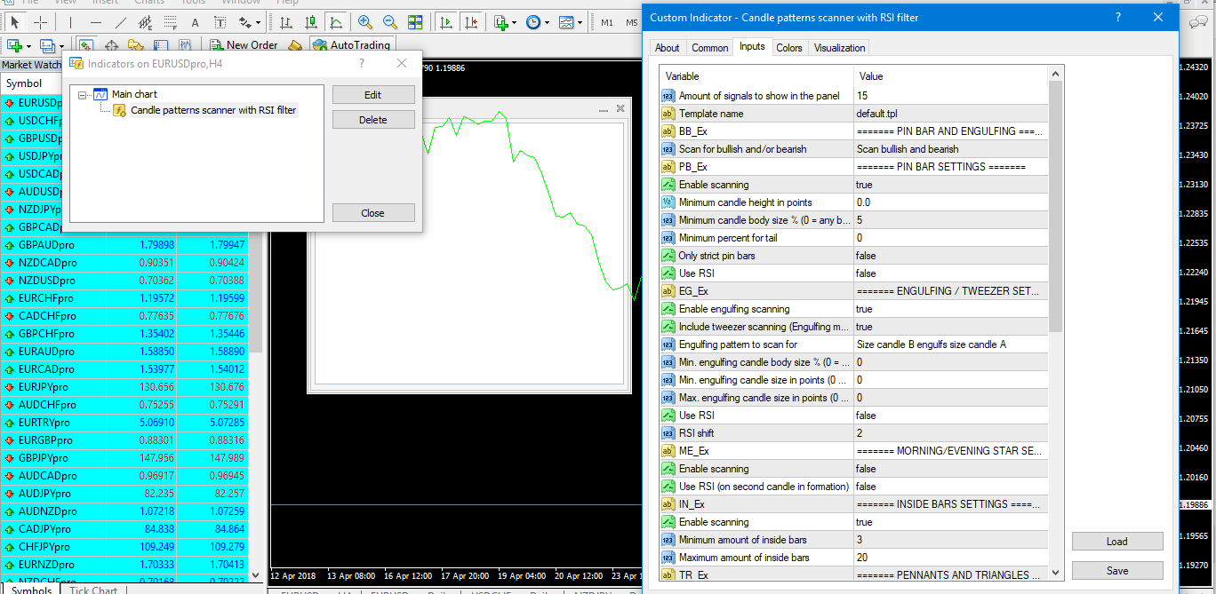 Candle patterns scanner with RSI filter