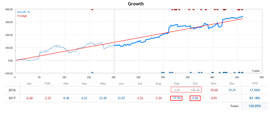 For September the month closed at the profit level of 17.94%. Total total profit for the entire period is about 340%.