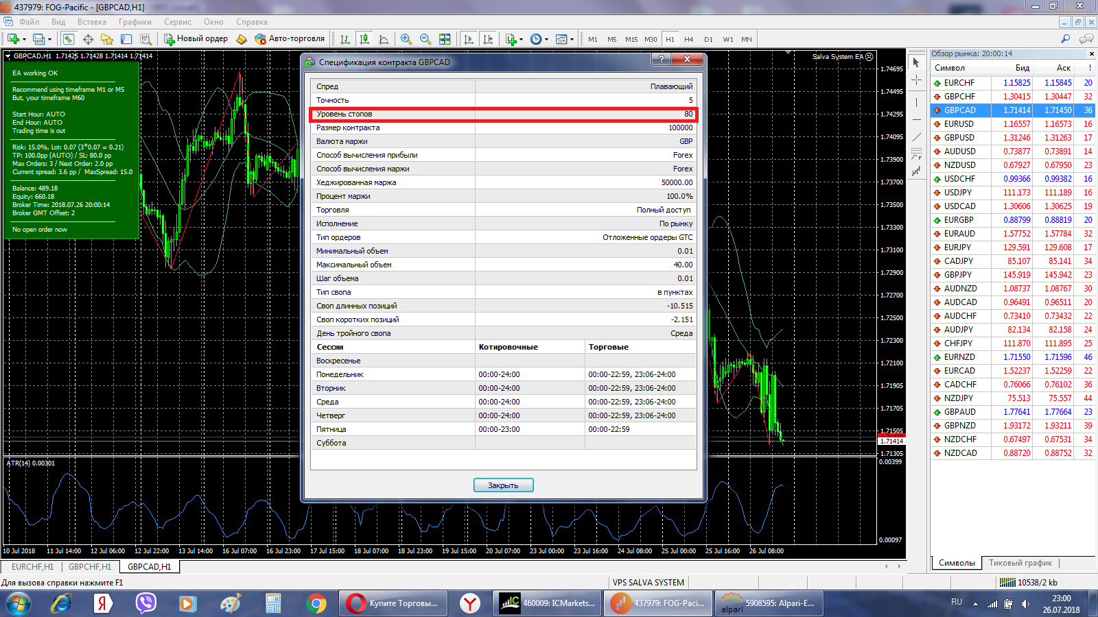 У меня проблема только с одним брокеров, у которого в спецификации уровень стопов 80. - рис. 1