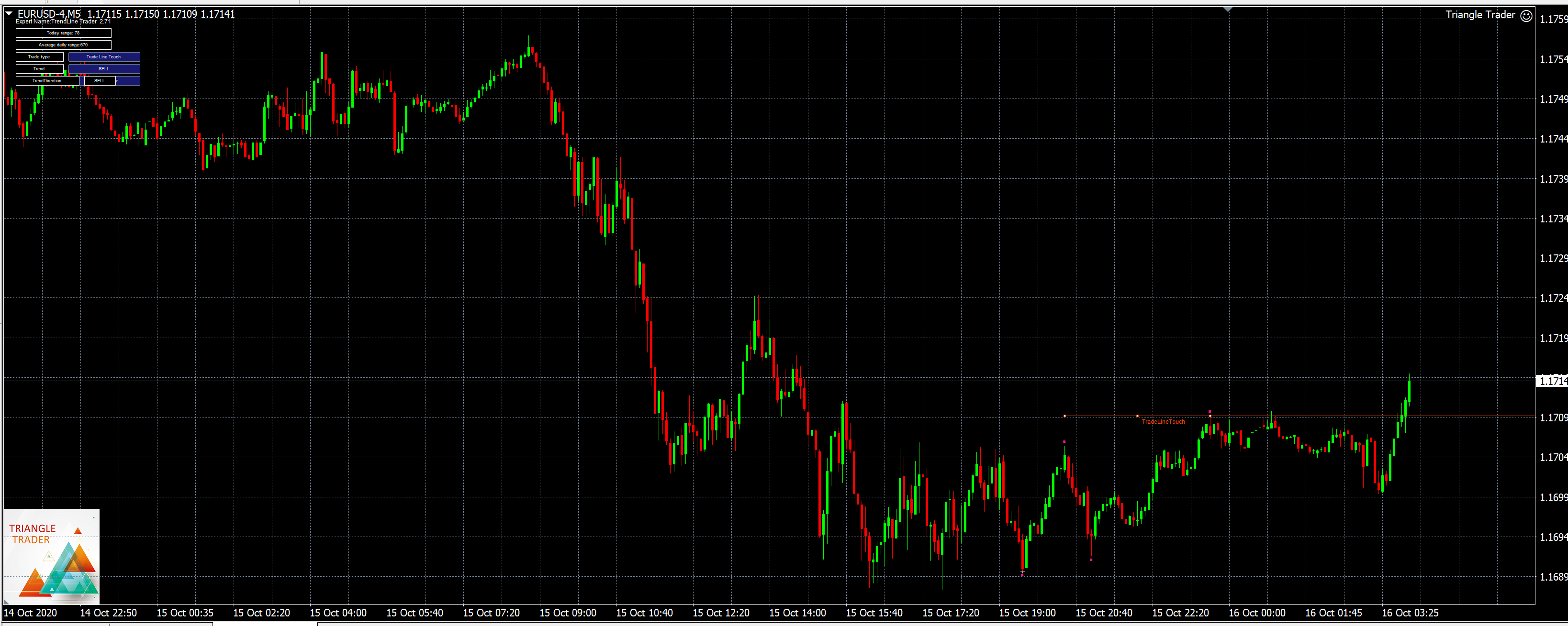 2- Candle may go out of triangle but it is not triger to trade. Candle needs to close out of triangle. Also bullish break out of candle when you have set the trend to sell means "donot open position" because it is against the trend
