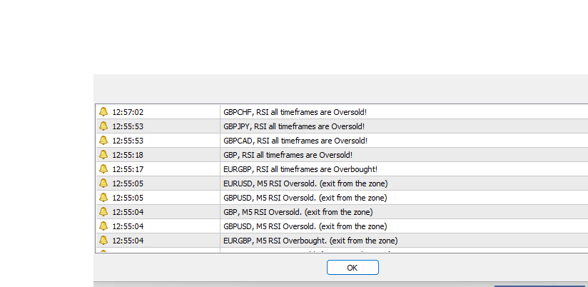 SELL alerts rsi cross down OB from above, rsi cross into OS from above and finally rsi cross down 50 from below. The settings can be changed but the most important levels are the OB/OS levels