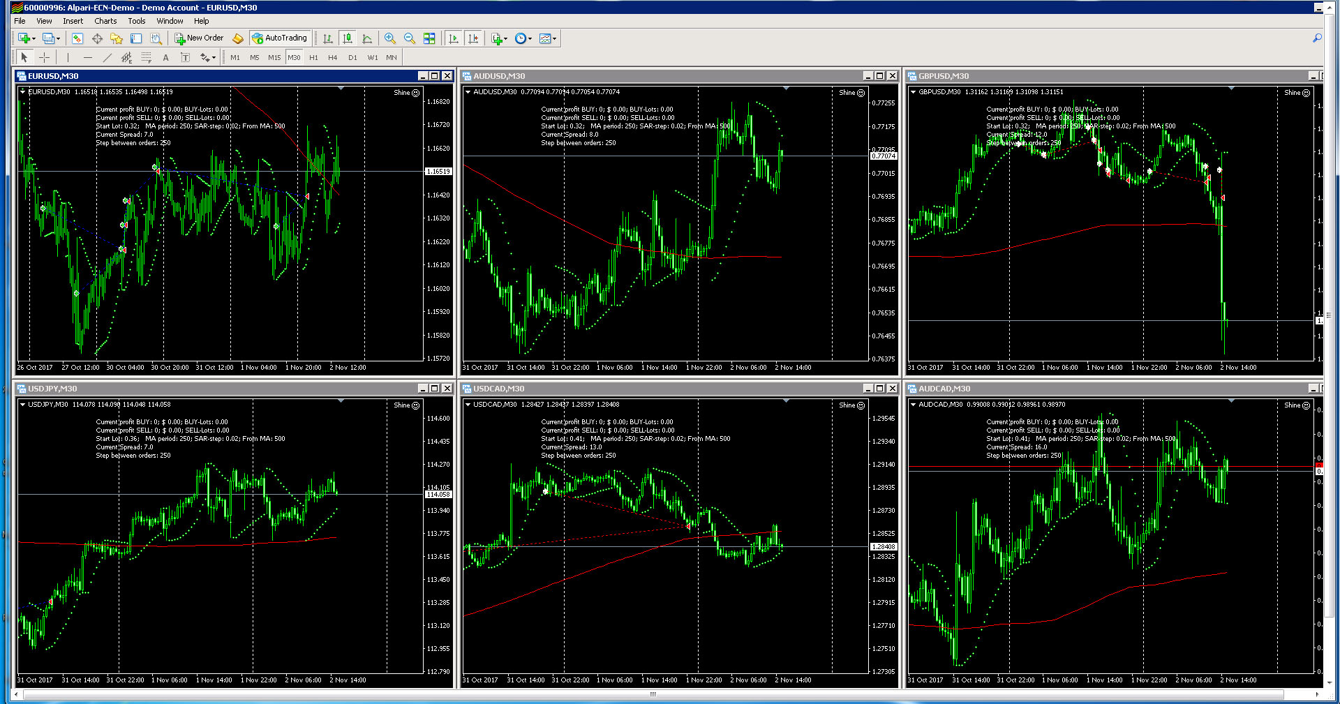 Pairs: EURUSD,USDJPY,AUDUSD,GBPUSD, USDCAD,AUDCAD.