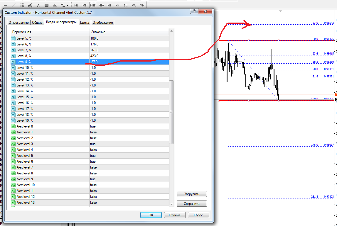 Здравствуйте. Катастрофически не хватает функции смены режима функций Reverse Fibo, Fix the right point in the future, а также возможностью включить и отключить индикатор, которые были бы выведены непосредственно на график например в нижний левый угол ( ну или с возможностью выбора размещения) желательно чтобы кнопки не были громоздкими по примеру как на скрине
