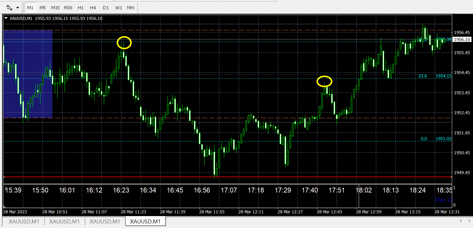 1) draw fibo from bottom to up, the level 0, 23.8, 38.2, 50, 61.8 is wrongly, it is opposite (see the picture for reference).