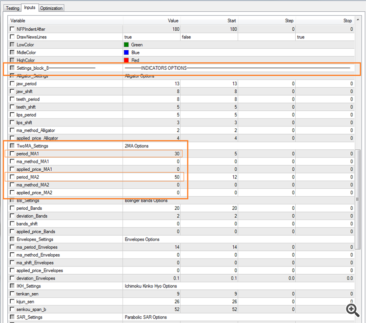 hi, i want to know how to set two MA.....if i use MA30 and MA50..thx