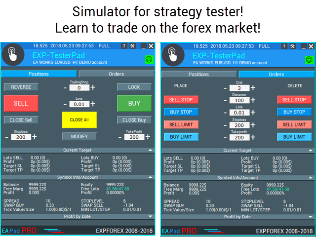 positions. If the position has been opened or closed, the simulator automatically pauses. To continue the work of the simulator, press the START button!