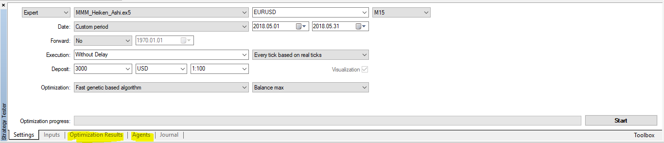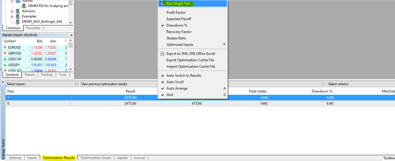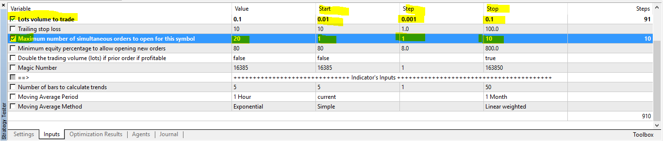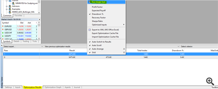 wait for optimization to be processed. It may take some hours depending on your computer speed and number of chosen inputs to be optimized. You may also buy computing resources in the clouds on the Agents page in order to quickly process it. After processing, you may check and choose the best results in the result page marked in yellow and run the test with the resulting input values by right button clicking and choose 'Run single test' option.