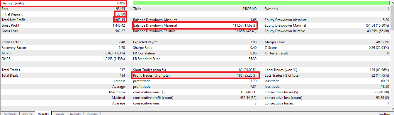 with its use, the best options for forward testing were obtained.
