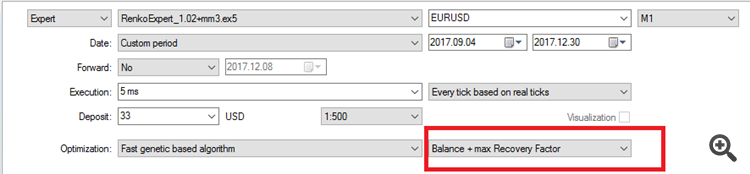 The optimization strategy is an Renkoexpert for profitable trading on a real account.