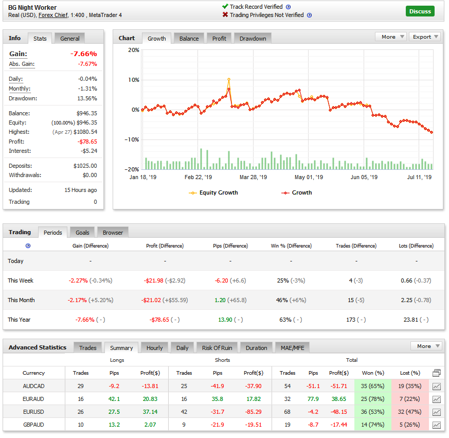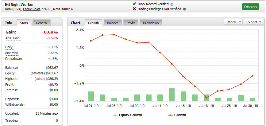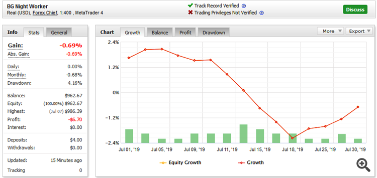 July is unprofitable. -0.69%. As You know from mid-July, I changed the trading settings and this was reflected in the Deposit growth chart.