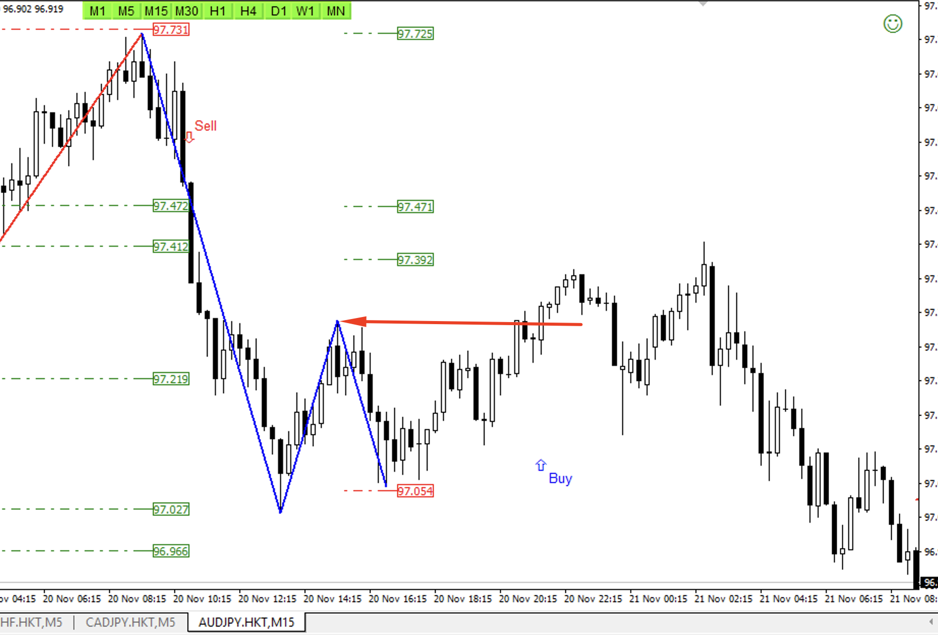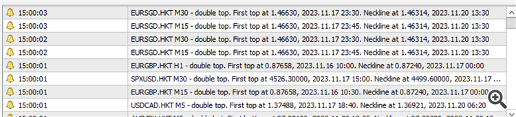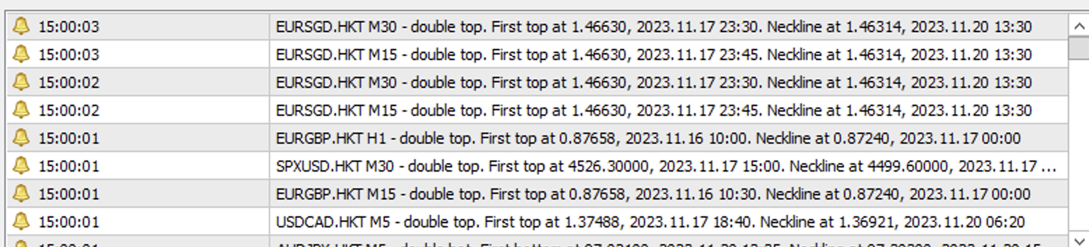 That can't be true. Neckline breaks happen all the time. I have M5 all the way to H4 enabled. For instance, this neckline break happened on the M5 ( using another indicator ) but yours never detected it. The only reason I can't use that indicator is the signals come in late ( about 3 candles after the neckline break ). Yours however doesn't detect it at all even after changing " Min. amount of bars between extremums" to 10.