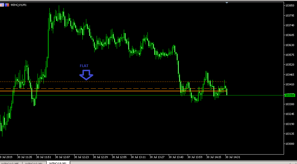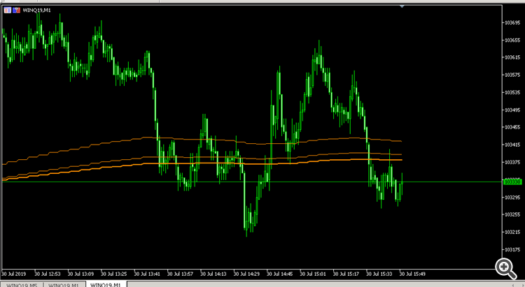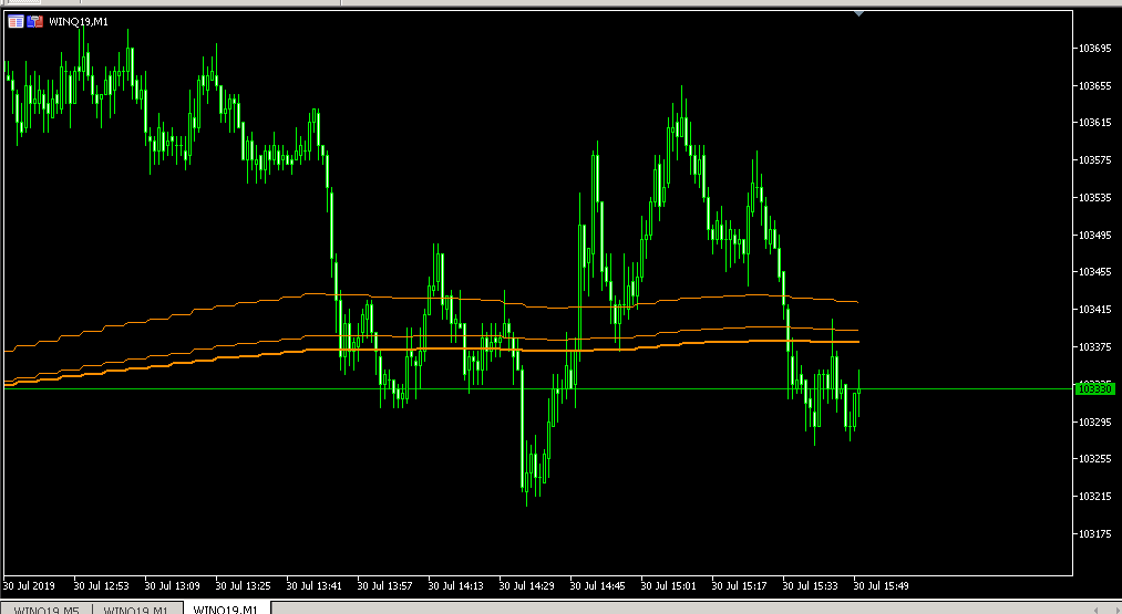 You are probably displaying a higher timeframe MA on the 1 minute scale. The MA value is set for the entire period (eg 4 hours) which is off the left side of your chart