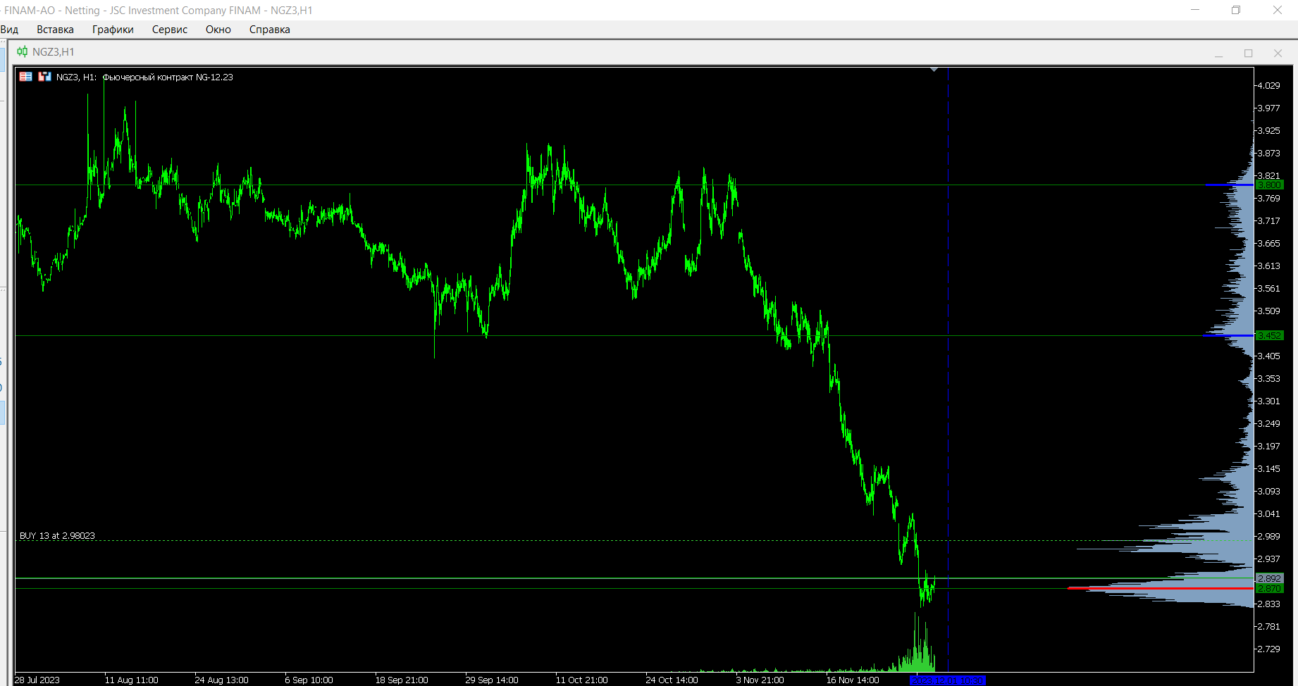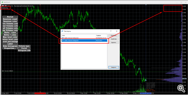 я использую период от линии до линии для того что бы видеть объемы за весь период фьючерса и как только линию вывожу за последний месяц эксперт исчезает хотя в списке графика он есть но не отображается . брокер финам единый счет