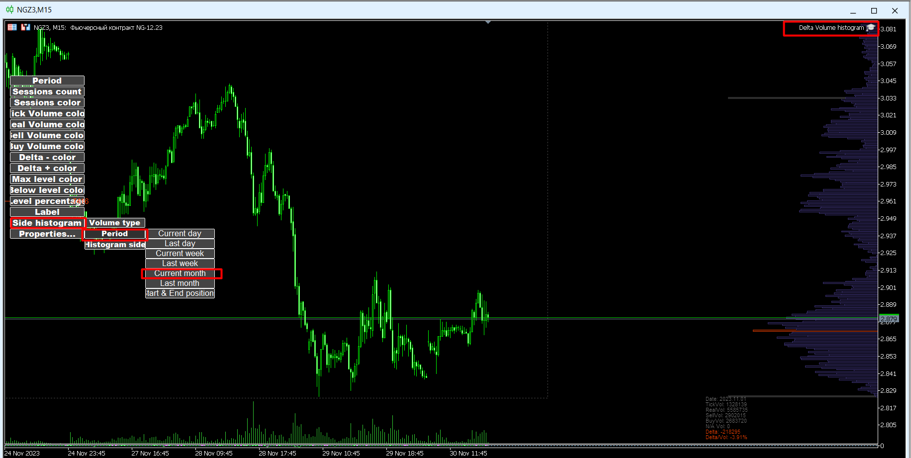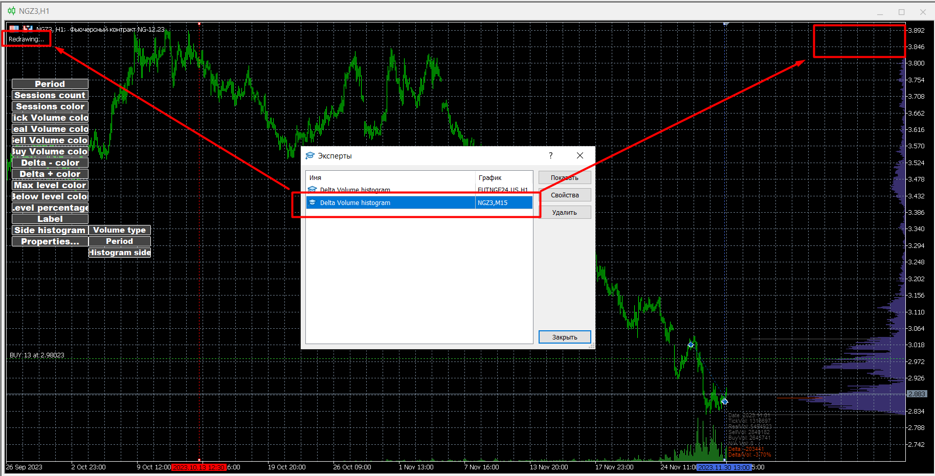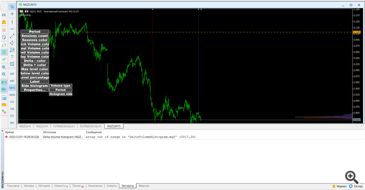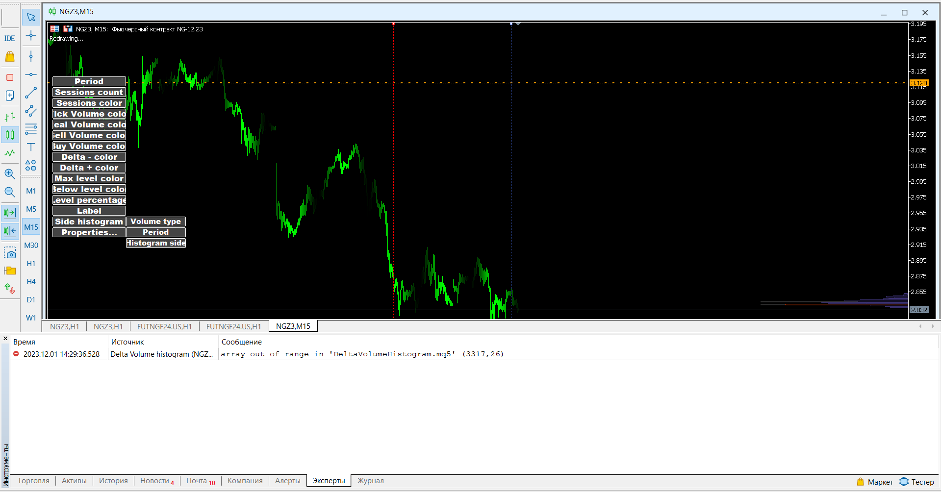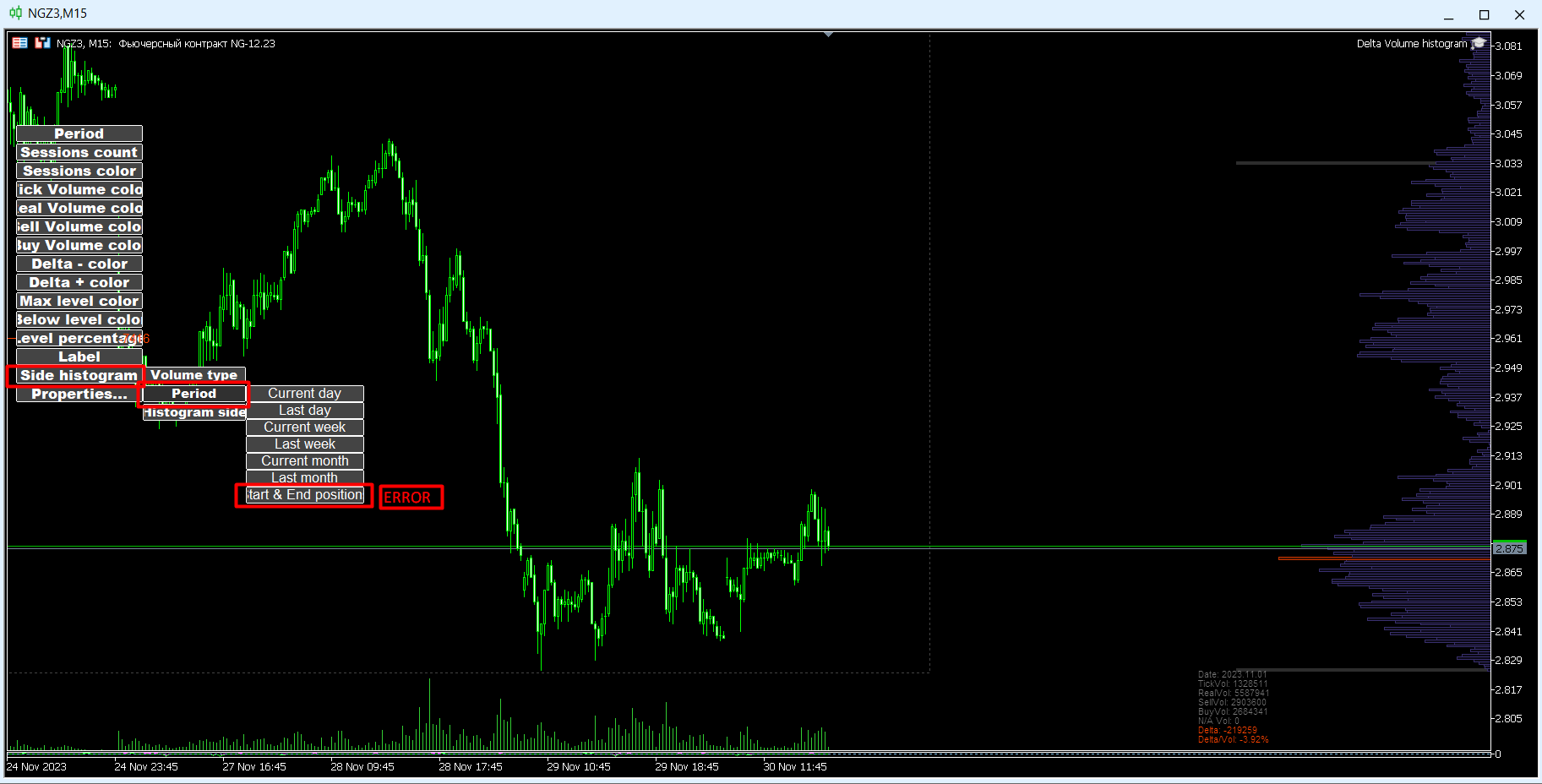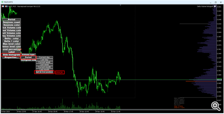 Я понял . Еще что не мешало бы добавит - сохранять состояние эксперта , а то приходится настраивать заново при каждом включении . Добавить период от начала символа до линии - это упростит настройку для работы на месячных фьючерсах . Так же хотелось бы улучшить работу с глобальной дельтой - добавить объем на максимумы покупок и продаж и добавить рамку на максимальную дельту - ниже рисунок