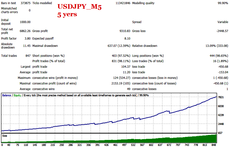 6 EURUSD set files and one USDJPY set are currently being tested on the signal. I traded 0.01 lot for every $ 100.