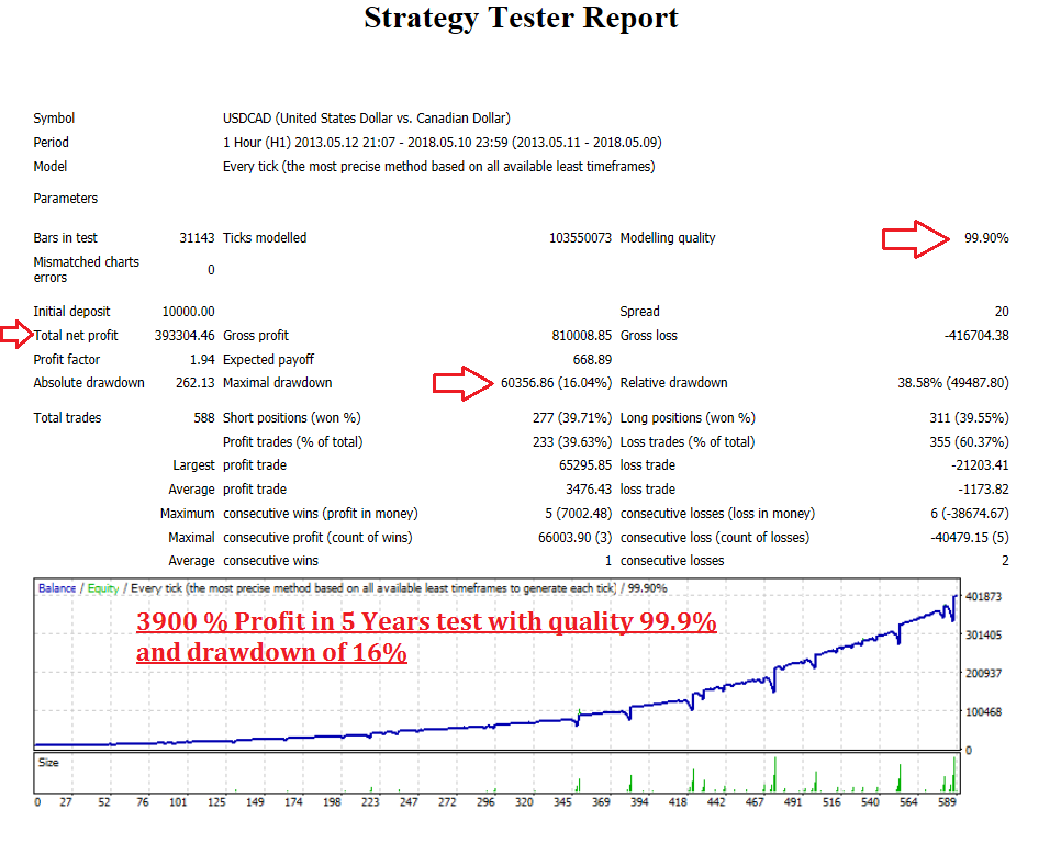 A clear pictures for testing in both balances of 10,000 $ & 1,000 $ only with 99.9% back-test quality