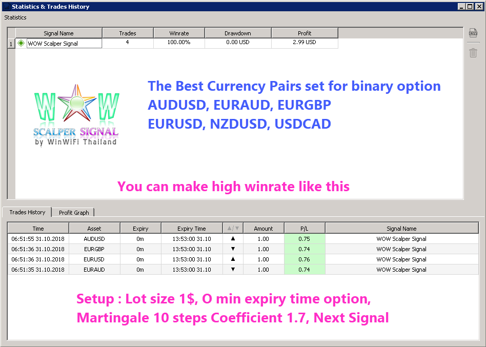WOW Scalper Signal Pro 10pairs MTG 5steps, Co2.4, on next Signal, The best indicator for any Binary Option platform Buy/Rent it here https://www.mql5.com/en/market/product/30250 and https://60win.blogspot.com E-mail: winwifi@gmail.com Line ID: nirundorn-winner