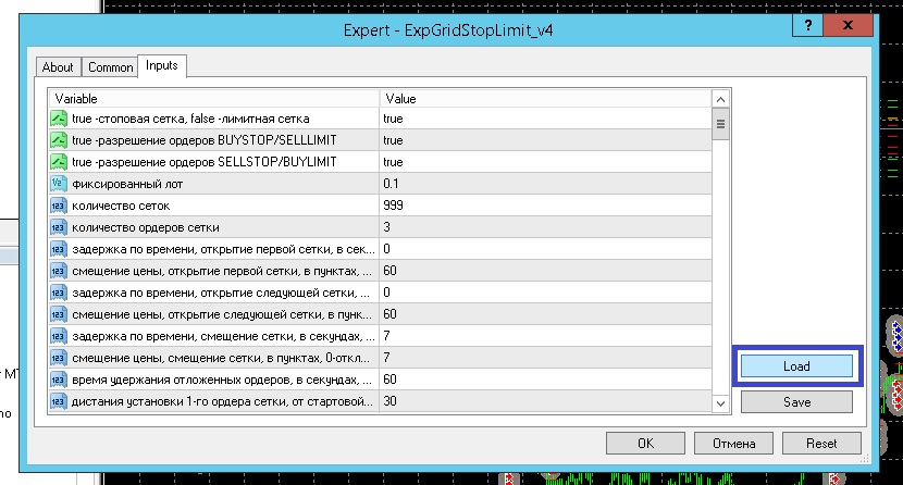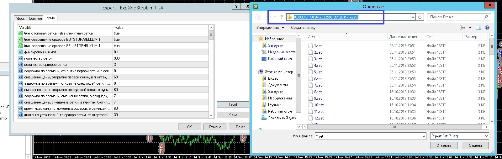 1. Transfer to the chart of any expert -> click load (LOAD) copy the name (location) of the folder (Ctrl + C)