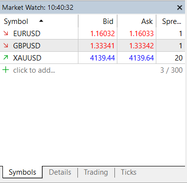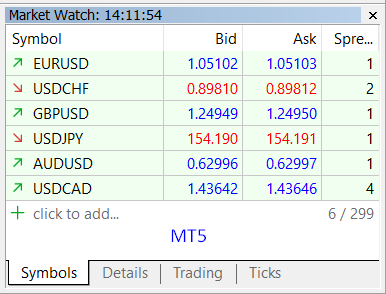 For example, I have included only six forex symbols. Please note that the same symbols are visible in MT4 and MT5. This is important if you are importing a tick database from MT5.