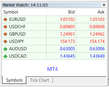 В окне "Обзор рынка" должны быть только нужные символы. Все ненужные символы удалите из этого окна.