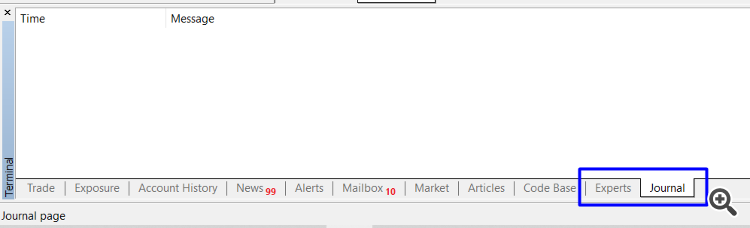 Проверьте содержимое вкладок терминала "Эксперты" и "Журнал".