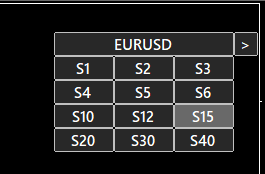 他の秒足チャートウィンドウにも、同様にアクティブな(クリック可能な)フィールドがあります:「XAUUSD_S1」、「XAUUSD_S2」、「XAUUSD_S3」。このフィールドもクリックできます。「XAUUSD_S1」フィールドをクリックすると、その秒足チャートウィンドウ内でパネルが展開されます。