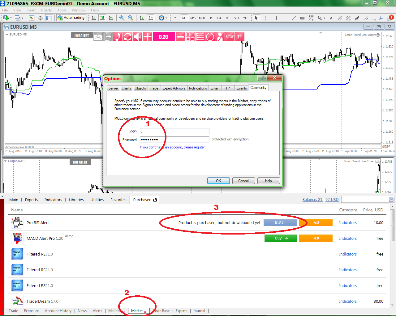 i just logged into my account and it is very difficult to find the place to download the indictor from.......i am not familiar with MQL 5 contents page and how to go through it in order to find the purchased option to download the indicator ....... and i can't see any thing showing the purchased option ......the only downloads i see is download a demo . why it complicated process? ...plese assist me