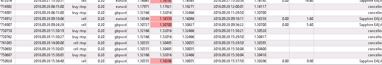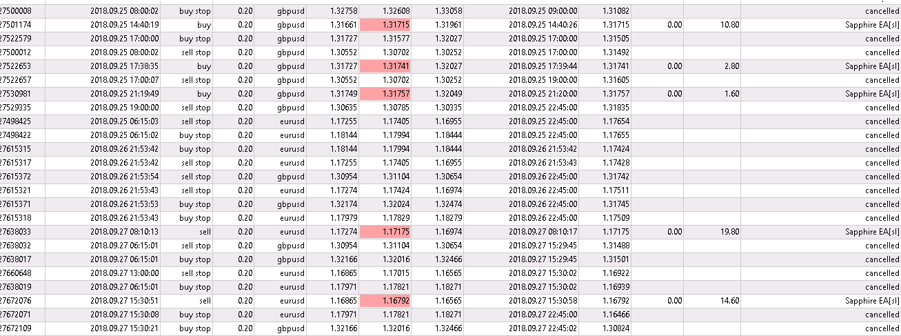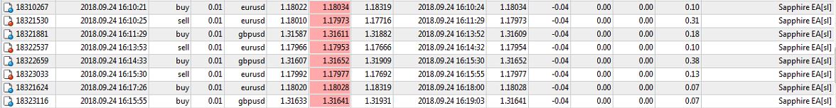I am also using H1 Chart for EURUSD but I have only 1 trade executed on 24 Sep. How you have 5 Trades of EURUSD? Currently I have VPS with 2.94 ms ping and Broker with average spread of 0.1 pips.