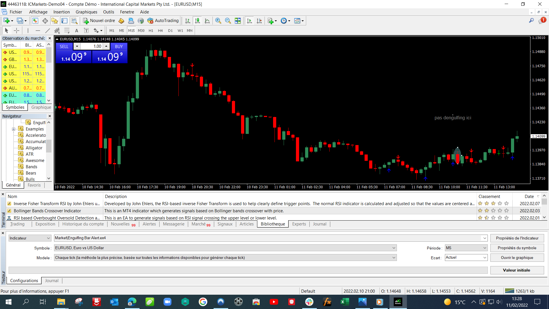 comment le configurer ? je narrives pas a voir les engulfings comme dans le graphique de la presentation?