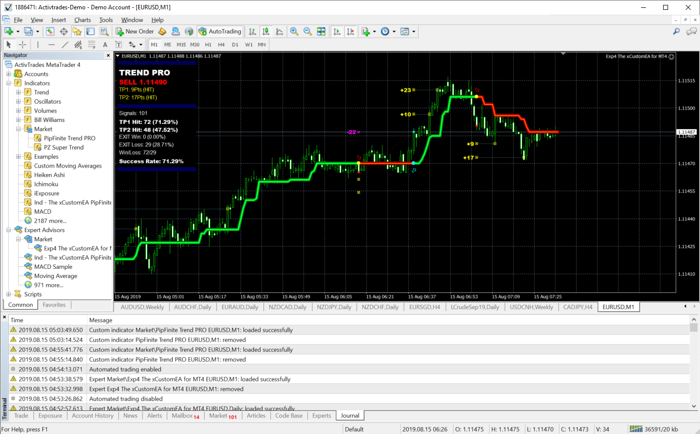 My goal is, to test the xCustom EA with the indicator Pifinite Trend Pro custom Set-File settings...