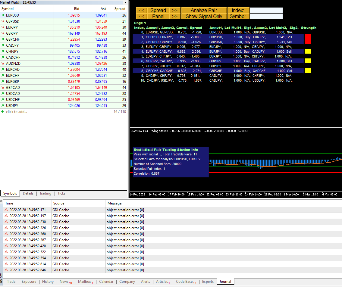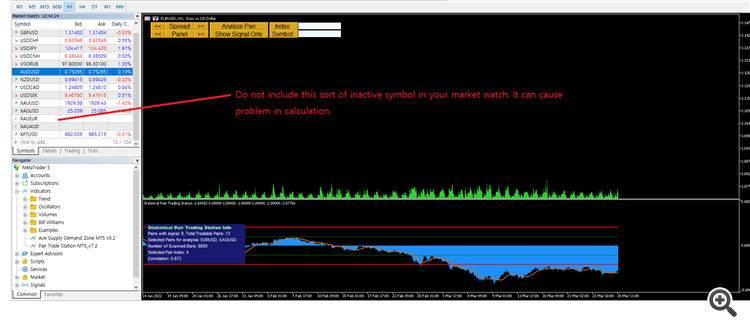 The recommendation is to attach this Pairs Trading Analyzer to Daily timeframe instead of H1 timeframe.